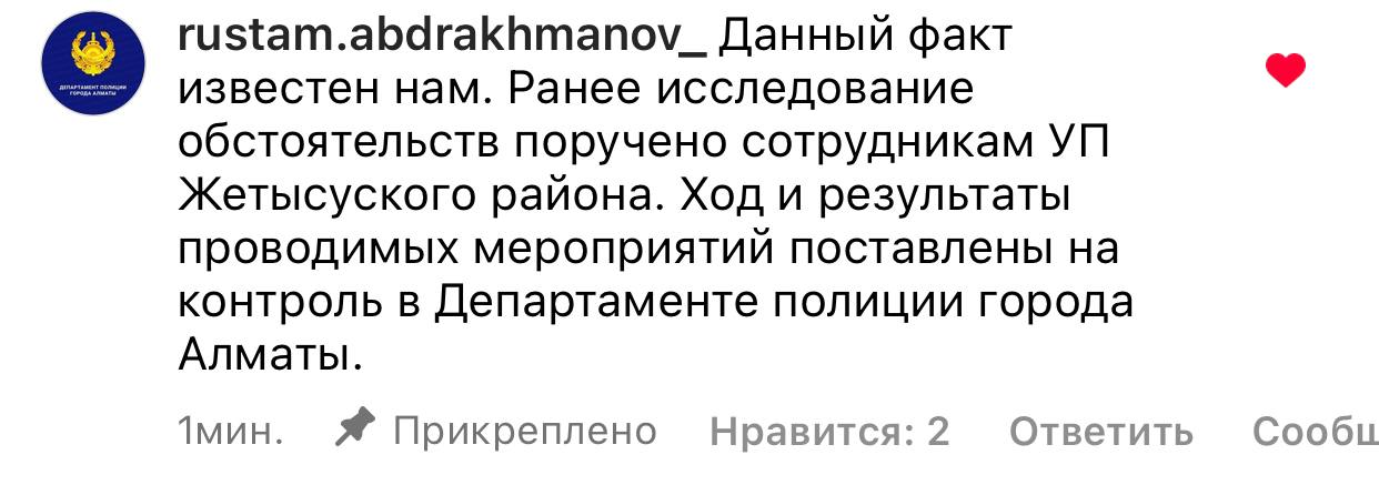 В полиции ответили, что этот факт им известен, делом занимаются в отделении Жетысуского района: