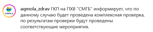 Представитель Управления здравоохранения Акмолинской области сообщил, что по факту жалобы будет проведена проверка.