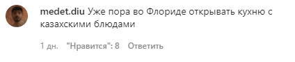 Людям в комментариях показалось, что на фотографии есть казахская еда, несмотря на то, что Морозов находится в другой стране: