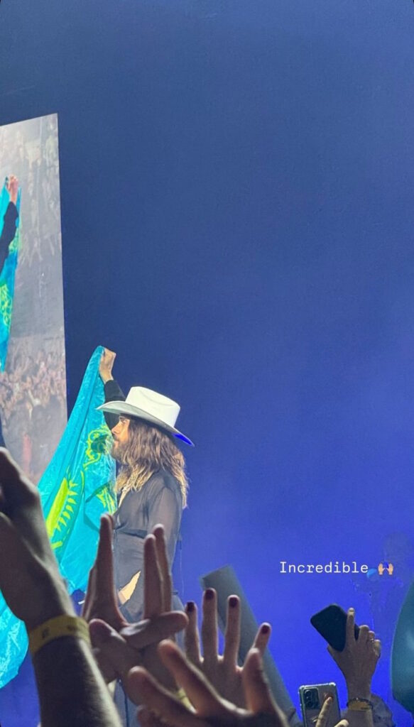 В ходе концерта фронтмен группы, известный певец и актер Джаред Лето, вынес на сцену флаг Казахстана, пишет Caravan.kz.