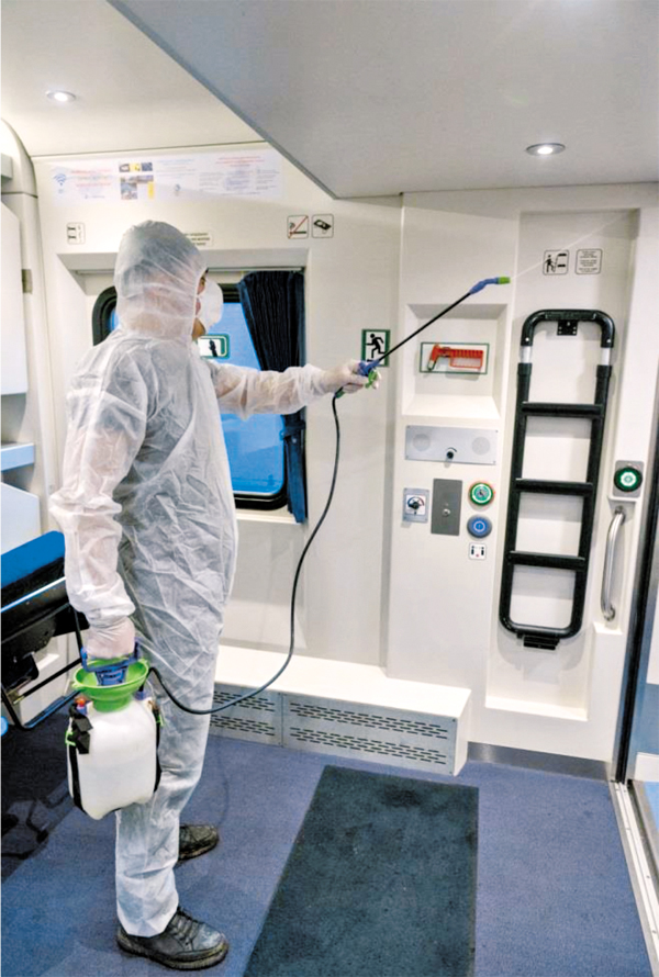В период пандемии особое внимание уделяется дезобработке составов. Перед отправлением в рейс каждый вагон проходит обработку против бактерий и вирусов сертифицированными препаратами. Тщательно обрабатываются поверхности пола, потолка, столов, диванов и окон.