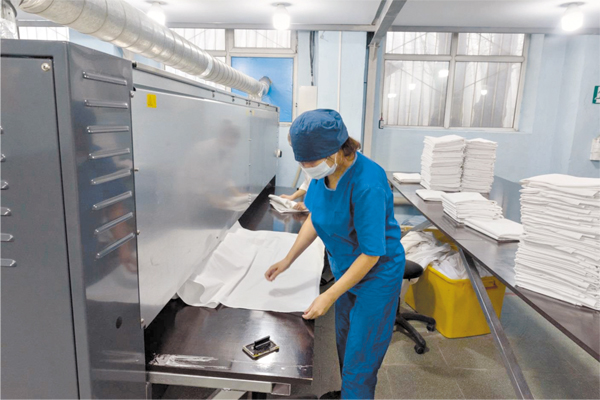 Также перевозчик уделяет особое внимание качеству стирки и подготовки постельного белья. В этом мы убедились во время посещения столичного моечного комплекса. Здесь поступившее постельное белье сортируется, затем работники прачечного комбината загружают его в стиральные машины. Стоит отметить, что в процессе стирки используются профессиональные моющие средства, согласно действующим стандартам. Из сушильной машины постельное белье отправляется на глажку, которая производится при температуре от плюс 170°С до плюс 200°С. Высокая температура позволяет уничтожать все вирусы и микробы.