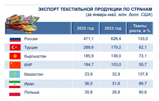 Вот данные по экспорту текстиля: