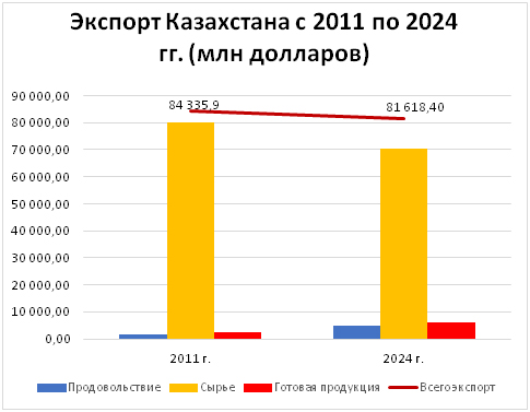 А это то, что продает Казахстан. Но за два года – 2011 и 2024 годы. Четко видно, что структура нашего экспорта особо не именилась.