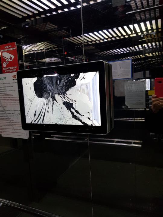 Так, неизвестный мужчина, находясь в лифте дома по улице Достык, повредил монитор. Своими действиями он причинил ущерб лифтовой компании.