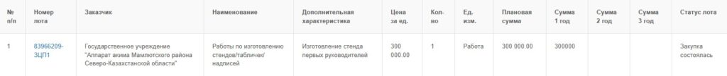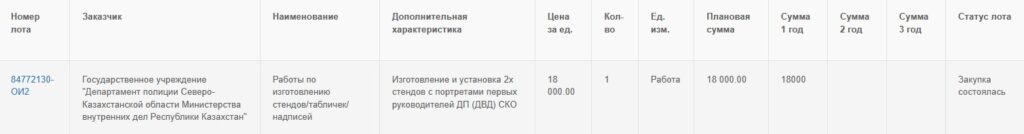 Например, аппарат акима Мамлютского района Северо-Казахстанской области заказал себе стенд с портретами первых руководителей за 300 тысяч тенге.