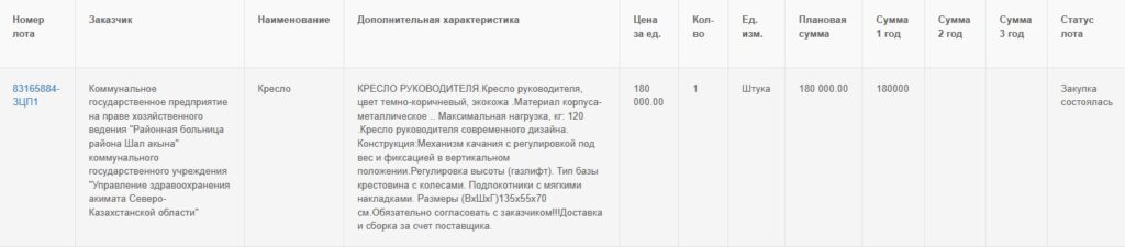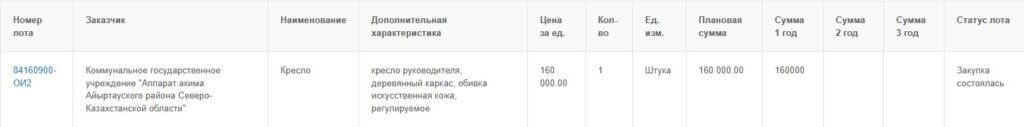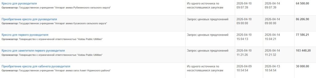 Для сравнения приведем другие закупки кресел, стоимость которых составила от 30 до 103 тысяч тенге. Зачем руководителям в СКО кресла подороже, видимо, останется загадкой.