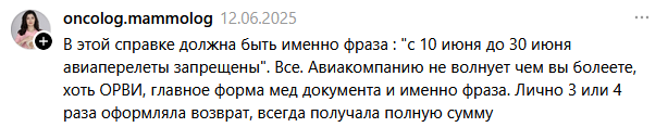 - соответствие дат болезни датам перевозки, либо указание «не рекомендуется полет в указанные даты».