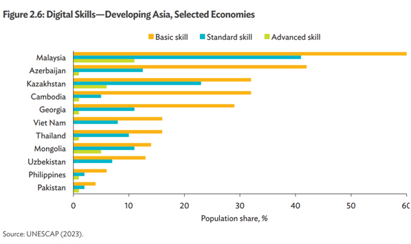 АБР считает, что развивающиеся страны Азии должны активнее инвестировать в развитие цифровых навыков на всех уровнях, чтобы обеспечить участие всех групп населения в цифровой трансформации и подготовить рабочую силу к профессиям будущего.