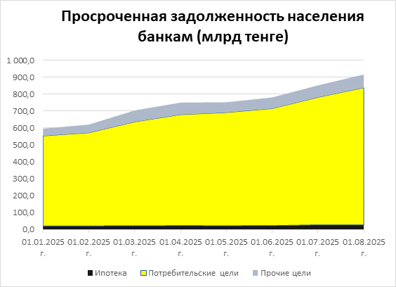 Теперь АРРФР предлагает ввести новый порог КДН для неплательщиков кредитов – 0,25. Это связано с ростом закредитованности населения и ростом просроченной заложенности. Причем данные Нацбанка говорят, что просрочка растет: за полгода сумма кредитов, которые заемщики не возвращают последние три месяца, выросла в 1,5 раза — с 596 млрд до 915 млрд тенге.