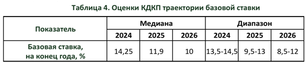 Пока в первом полугодии 2024 года инфляция растет согласно прогнозам Национального Банка. В то же время давление внутри экономики усиливается за счет роста объёмов денег, поступающих из бюджета, продолжающегося роста тарифов в ЖКХ, устойчивого внутреннего спроса и повышенных инфляционных ожиданий. Реализация умеренно жесткой денежно кредитной политики будет способствовать тому, что базовая инфляция, при расчете которой не учитывается изменение цен на ЖКХ и ГСМ, замедлится до 5 % в 2026 году. Таким образом, инфляция в 2024 году составит 7,5-9,5 %, в 2025 году – 5,5-7,5 %, в 2026 году — 5-7 %.