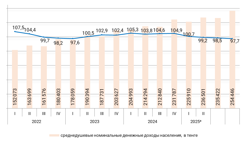 Формально доходы жителей РК растут. По номиналу среднедушевой доход в 4 квартале 2025 года составил 254,5 тыс. тенге против 231,8 тыс. тенге в 4 квартале 2024 года. Это рост на почти 10 %. Однако номинал не учитывает инфляцию в стране. В ситуации разобрался корреспондент медиапортала Caravan.kz.