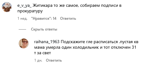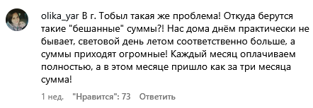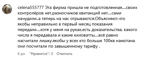 «За электроэнергию пришли баснословные счета. Отвечают по-хамски: «Сами намотали столько». Все наши соседи в полном шоке, да и не только соседи.