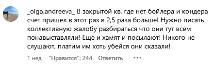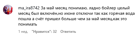 Многие отмечают, что счета выросли даже в случаях, когда это кажется невозможным, например, в пустой квартире или когда жильцы перестали пользоваться бойлером. Некоторые добавляют, что в июне был целый ряд отключений электроэнергии, но потребление, если верить квитанциям, выросло все равно.