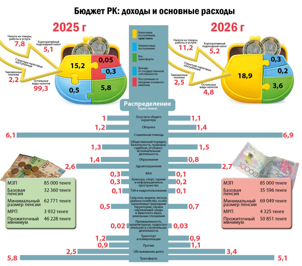 Примерно такой вывод можно сделать после сравнения бюджета 2026 года с бюджетом уходящего 2025 года, сообщает корреспондент медиапортала Caravan.kz.