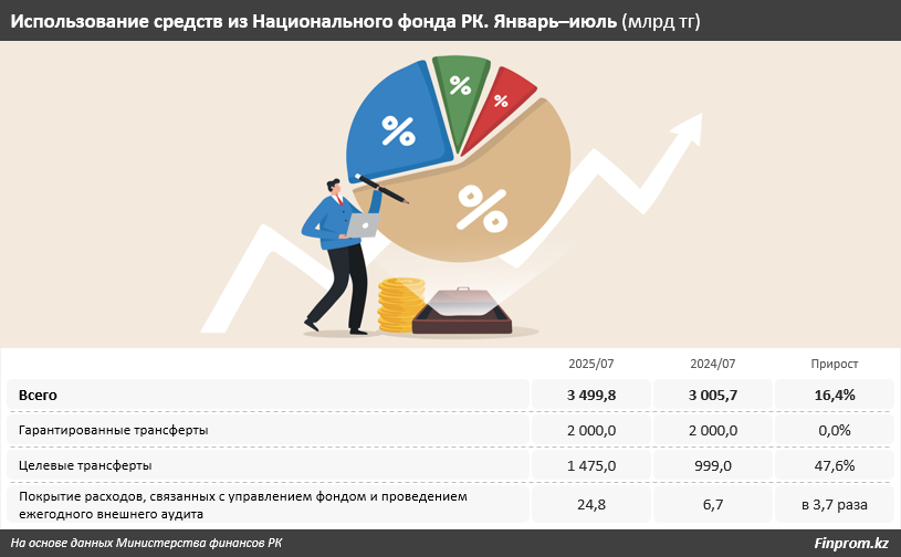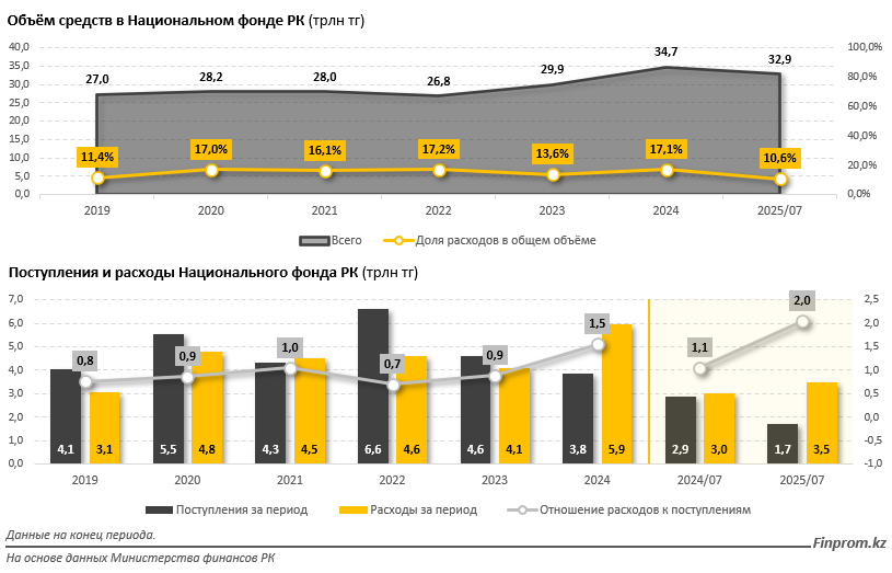 Впервые за последние годы расходы Национального фонда оказались в два раза выше, чем его доходы. Речь идет о январе–июле 2025 года. По данным Минфина, за семь месяцев из Нацфонда забрали около 3,5 трлн тенге, тогда как поступило туда всего 1,7 трлн тенге, передает медиапортал Caravan.kz.