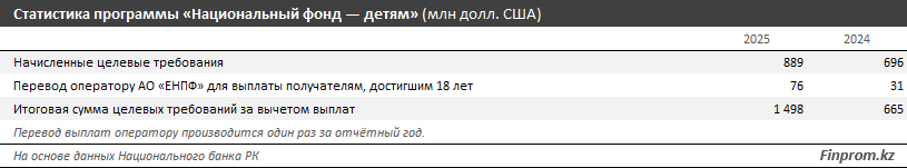 Отдельная статья – программа «Нацфонд – детям». На счета несовершеннолетних в 2025 году начислено уже 889 млн долларов, а общий объем детских накоплений к концу года должен достичь 1,5 млрд долларов. Первые выпускники программы в прошлом году направили большую часть выплат на жилье и образование.