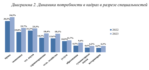 Больше всего в госаппарате не хватает специалистов: права (3,8 %), экономики (3,9 %), технических наук (2,1 %), здравоохранения (4,2 %), сельского хозяйства (4,5 %), услуг (0,8 %), образования (2,9 %), гуманитарных наук (1,6 %) и ветеринарии (1,9 %).