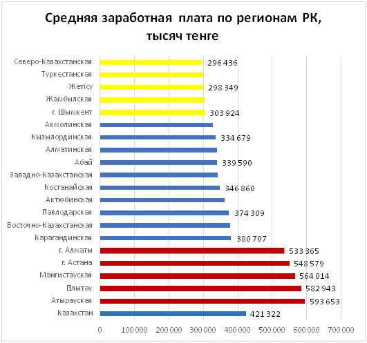 Средняя зарплата по стране была 421,3 тыс. тенге.