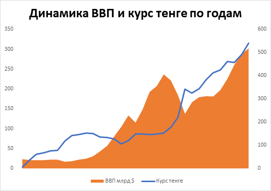 Это были первые по-настоящему жирные годы. Курс был стабилен – 152-155 тенге за доллар. Экономика росла, как на дрожжах: средний рост экономики за предыдущие пять лет был 16 %. Это в 2,5 раза больше, чем сегодня.