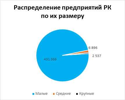 Всего в Казахстане работает 441 тысяча разных по размеру предприятий. 99,9 % — это малые и средние по размеру предприятия.