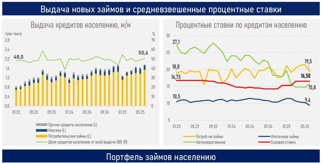 Спрос смещается в сторону кредитов, обеспеченных залогом. Больше всего выросли автокредитование (+54 %), займы под залог (+23 %) и ипотека (+14 %). В то же время ключевой сегмент беззалоговых займов сократился (−16 % г/г), что отражает ужесточение макропруденциальных мер, рост ставок и осторожность банков в отношении высокорискового сегмента.