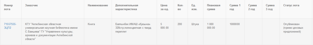 Актюбинская областная универсальная научная библиотека имени С.Баишева не отстает. С одной стороны, покупка книг – это именно то, что ожидаешь от библиотеки. С другой стороны, выбор издания вызывает сомнения. В частности, учреждение выделило миллион тенге на приобретение 200 экземпляров книги «Қазына» автора по имени Балғынбек Имаш.