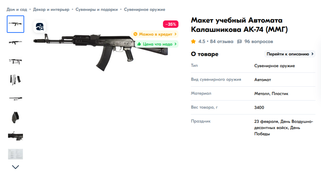 Допустим, для военной кафедры это, действительно, нужно, но на маркетплейсах легко можно найти аналогичный товар, соответствующий всем требованиям, по цене в 2 с лишним раза ниже.