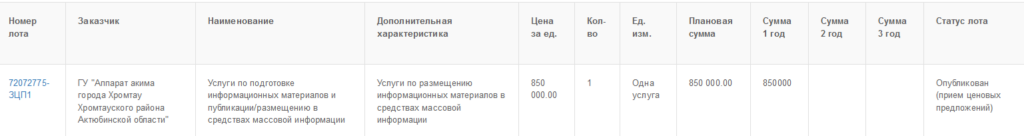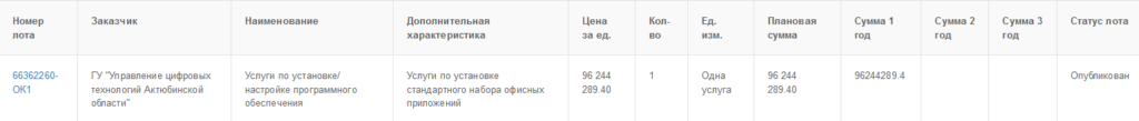 Но победителем данной рубрики можно считать Управление цифровых технологий Актюбинской области, которое готово выплатить 96 244 289,40 тенге за «услуги по установке стандартного набора офисных приложений».