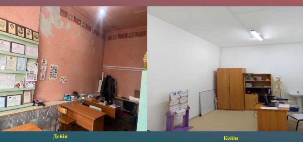 А сотни детей годами учились в таких условиях. Сочувствие вызывает и взрослый персонал школы. Отдал бы аким своих детей учиться в такую школу? Хотел бы он сам работать в таком кабинете? Ответ мы не узнаем, но можно предположить, что ответ был бы «нет» в обоих случаях.