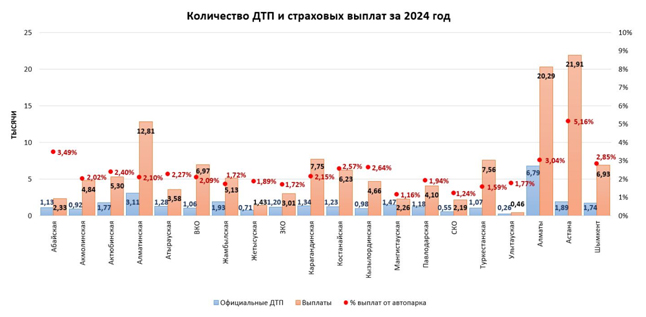 «По нашей внутренней статистике, примерно в каждом десятом ДТП участвует три и более транспортных средств, что снижает общий уровень аварийности, так как на одно страховое событие приходится несколько выплат. При этом 11 970 наездов на пешеходов, произошедших в прошлом году, не учитываются страховой статистикой. Таким образом, в Казахстане в 2024 году произошло не менее 130 тыс. ДТП», – подсчитали аналитики СК «Евразия».