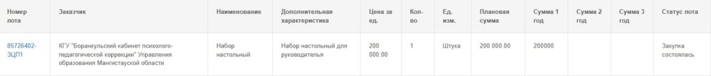 Однако КГУ «Боранкульский кабинет психолого-педагогической коррекции» управления образования Мангистауской области приобрел такой набор в 13 раз дороже, за 200 тысяч тенге.