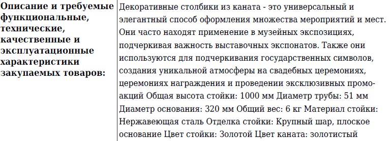 Техспецификация еще любопытнее, чем в предыдущем случае. Например, из документа можно узнать, что школьная администрация выбрала модель стоек без идентификации личности. А еще – что такие стойки «идеально подходят для оформления зон ограждения и управления очередью в культурных, религиозных, деловых и торговых центрах», не говоря о том, что они «стали незаменимым атрибутом торжественных мероприятий государственного уровня, фестивалей культуры и искусства, деловых форумов, юбилейных торжеств».