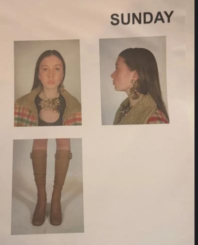 16-летняя Сандей появилась на показе известного бренда. Девушка дефилировала на подиуме в шоколадном кожаном топе с вырезом и массивным золотым украшением, клетчатой пушистой куртке, горчичной юбке и светло-коричневых высоких сапогах на каблуках.
