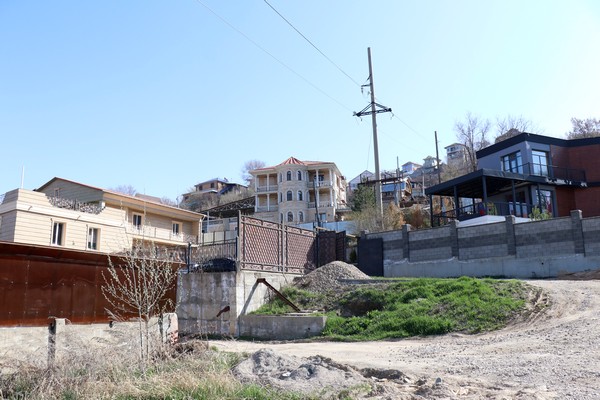 Поднялись мы выше, где находится ПК “Садоводческое товарищество “Курортное”. На центральной улице увидели треснувшие заборы. Трещины появились в земле. Жители говорят: после ливней здесь образуются глубокие канавы, даже страшно ходить. Срезанные склоны гор – повсюду. Впрочем, как и в других предгорных районах.