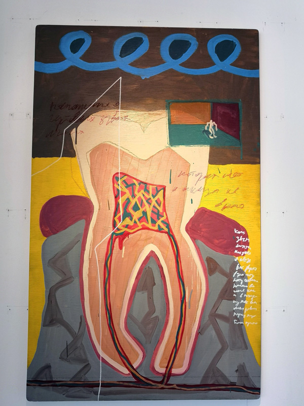 – Еламан Мұқтархан – яркий представитель своего поколения пост-Интернета, пост-Тик-тока. У художника был опыт, когда ему удалили 3 коренных зуба сразу, так родился сюжет для нескольких работ, в которых зритель увидит свои смыслы. Например, через образы женщин в скорлупах, держащихся за руки, автор передает импульс объединения людей через язык искусства, – говорит Бауыржан Сагиев.