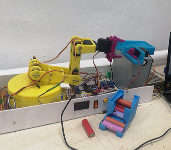Если аккумулятор непригоден к использованию или неверно установлен, то рука-манипулятор отправит его в один контейнер. Если всё в порядке, то он будет заряжен, а потом его перенесут в другую емкость. И работа продолжится.
