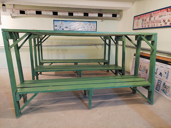 – Это двухъярусные нары для сна. Сейчас их мало, но в случае войны в течение 12 часов их должны завезти в нужном количестве, вместе с едой и всем необходимым, чтобы люди могли продержаться трое суток.