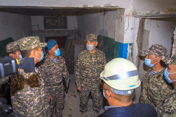 В Сарыозекском гарнизоне Нурлан Ермекбаев лично обошел все объекты, находящиеся в военном городке. Картина предстала удручающая: ремонт солдатской казармы идет медленно, личный состав вынужден проживать в палатках, кругом незавершенка и запустение. Положение немного облегчает новая модульная казарма, но всех солдат там не разместишь.