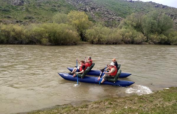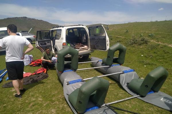 Мы собрались на живописном берегу Боралдая, знаменитого еще и тем, что в полукилометре от места старта находится одна из самых больших галерей петроглифов на юге. Подготовка катамаранов не заняла много времени. Отрадно, что участники команд приехали с семьями и детьми, а значит, совсем юным интересен такой вид отдыха. Второклассник Богдан, приехавший на сплав с родителями и братьями, настроен решительно: “Буду сам сплавляться. Я плавать умею”. Мечтательная Асель более осторожна в увлечениях: “Я хочу увидеть красоту природы, гор. Вот только сплавляться сама не буду. Мне страшно, хотя я плавать умею. Катамаран, хотя и выглядит прикольно, но всё равно страшно”. Собственно, и состав команд достаточно разнороден. Кто-то сплавляется впервые, а кто-то уже имеет за плечами не одну регату. Сергей ПОРУШКОВ, один из участников нашей команды, занимаясь в “цивильной” жизни автоматизацией производства, казалось бы, далек от сплавов по реке. Но и он не остался равнодушным к приключениям. “А почему бы и нет? Это ведь адреналин в чистом виде. При этом я нисколько не сомневаюсь, что он обязательно будет присутствовать. Опыт сплава по Арыси в этом убеждает. Осталось отличное впечатление. Тогда пришли не последними, хотя и далеко не первыми. Опасности как таковой не было. Хорошая команда страхует друг друга”, – рассказал о причинах участия в регате оптимистично настроенный специалист в области IT-технологий.
