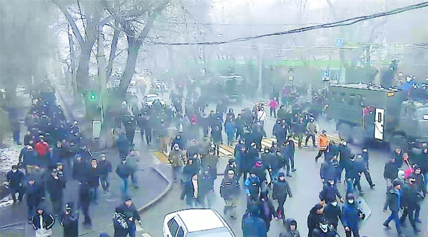 Но особенно тяжелой ситуация оказалась в Алматы, и час от часу она лишь осложнялась. Дело в том, что здесь митингующие не выдвигали никаких требований и категорически отказывались от переговоров. Неизвестные просто начали отбирать машины у граждан, скручивали с них госномера и так передвигались по городу. Если 3 января на площадь Республики вышли обычные митингующие, то в ночь на 5 января с окраин Алматы к центру города начали стягиваться толпы агрессивно настроенных молодых людей. Сотрудники полиции и бойцы Национальной гвардии попытались было перекрыть им движение, но из этого ничего не вышло, так как митингующих было гораздо больше. (Тут нельзя не вспомнить хронические реформы МВД, одним из результатов которых явилось сокращение числа сотрудников полиции. Теперь же вдруг выяснилось, что их у нас, оказывается, недостаточно!)