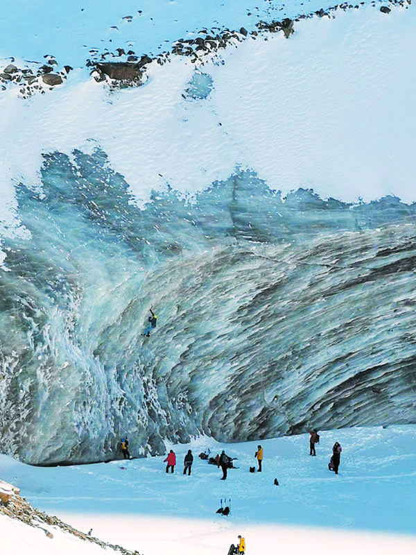 – Во время пандемии, карантина стал стихийно развиваться внутренний туризм, особенно в Алматинской области, – говорит Андрей Алмазов. – Люди не могли выехать за границу и стали для себя искать отдушину, ходить по горам. Те, кто ходили по разным локациям, однажды пришли на ледник Богдановича и увидели хорошо забытое старое. Кусок рельефа ледника выглядит как стена, более 10 метров высотой и 35 метров в длину. Похож на бело-голубой мрамор с прожилками. Некоторые шутят, что в этом льду можно увидеть даже рыб. Это впечатлило, стало “инстаграмным”. Фотографы сделали отличные фото, и они ушли в соцсети.