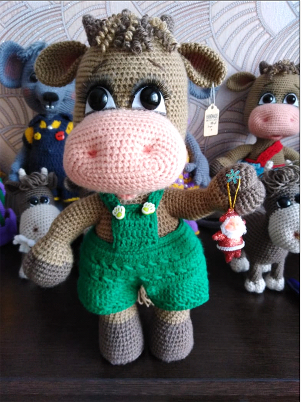 Для вязания игрушек Галина использует разные нитки, всё зависит от размера героя и задумки мастерицы, благо сейчас выбор велик. В качестве наполнителя использует гипоаллергенный холлофайбер, поэтому игрушки получаются не только мягкими, но и теплыми. И, конечно же, каждый персонаж одет в свою оригинальную одежку – платье или штанишки. А иногда даже обут в ботиночки или сапожки.