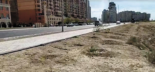 Недавно горожане обратили внимание на одну из аллей. В ней – вся удручающая история озеленения Актау за последние 3 года. В июле 2018 года, в самый солнцепек, здесь вдруг начали высаживать деревья. Тогда рассказали, что за 4 дня высадят 7 тысяч саженцев павловнии, это деревья с широкой кроной, крупными листьями, могут достигать в высоту 20 метров. Несмотря на то, что специалисты Ботанического сада предупреждали о том, что в такую жару высаживать павловнию нельзя, посадки продолжились. Спустя несколько дней практически все деревья поникли.
