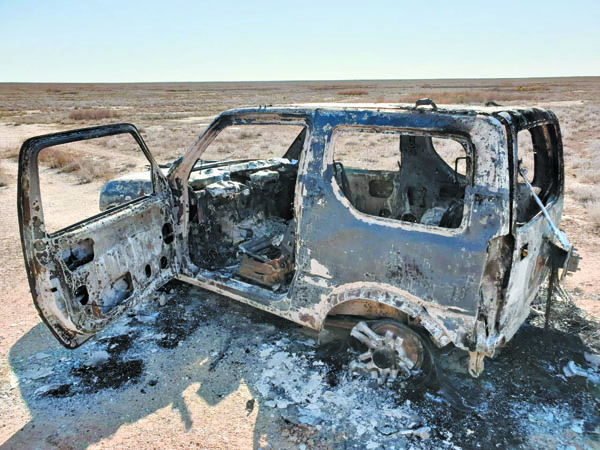 Ольга с сыном пошли по следам своей автомашины. С собой несли кусок расплавленного алюминиевого диска от машины, точно такие же разложили и возле машины – блики на них от солнца или фар могли послужить сигналом, что люди в беде. Кстати, под саксаулом, где ранее сидели мать и сын, Ольга оставила зеркало – оно тоже должно было привлечь внимание.