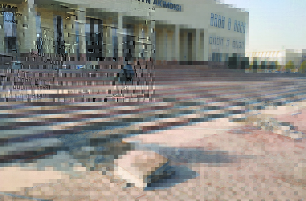 У центрального входа в здание городского акимата рабочий укладывает новые гранитные плиты взамен раскуроченных. Со стороны и не скажешь, что здание сильно пострадало от разрушений и пожаров. Пожалуй, только закрытые рольставнями панорамные окна нарушают вполне мирную картину. Рахим, так зовут строителя, говорит, что поменять придется около двух десятков плит и основную работу он уже проделал. С противоположной стороны акимата еще пара рабочих на строительных лесах меняет облицовочную плитку стен. И сюда добрались вандалы. Но с этой стороны здания следов недавних волнений значительно больше. На асфальте до сих пор – следы огня. Да и о самих поджогах недвусмысленно говорит еще неубранный сожженный “КамАЗ”.