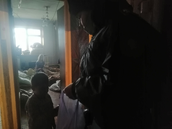 Дверь открывает уставшая женщина с очень болезненной худобой. Дети спят на полу – все под одним одеялом. Электричества в квартире нет, стены обшарпанные, обои местами отвалились, на кухне грязно. Благо, что тараканов не видно.