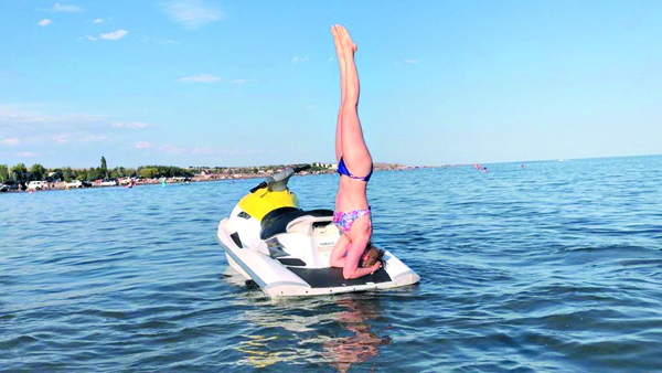 – Я выставила там свой ролик со стойкой на голове на скутере, и он резко пошел вверх, – продолжает моя собеседница. – Это видео снято во время летнего отпуска на Алаколе. Ролик уже набрал около миллиона просмотров. Эта стойка довольно рискованная, потому что скутер находится на воде и очень неустойчив на волнах. Я занимаюсь йогой с инструктором уже много лет и имею достаточный опыт. И не советую повторять трюк без специальной подготовки. Помните важное правило йогов – чтобы встать на голову, нужно ее иметь!