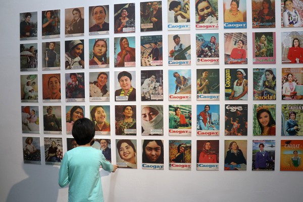 Что еще интересного на выставке? Видеоколлаж “Ее право”, созданный из фрагментов узбекских фильмов, снятых с 1927 по 1985 год. Обложки женского агитационного журнала “Янги йул” (“Новая дорога”), позже переименованного в “Женщины Узбекистана”, затем в “Саодат”, собранные с 1925 по 2019 год. По ним можно наблюдать, как в обществе менялся образ идеальной восточной женщины.