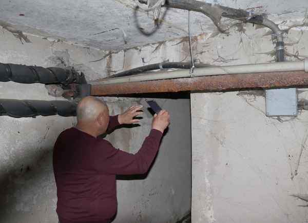 – Здесь заканчиваются мои владения, – сообщает начальник участка. – Часть водопровода в подвале поменяли, вход трубы тоже надо менять, он может забиваться. А трубы канализации в аварийном состоянии, подвал затапливается.